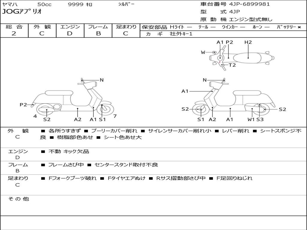 | Номер рамы / VIN | 4JP-6899981 |