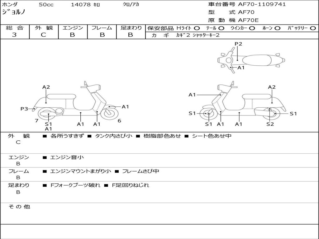 | Номер рамы / VIN | AF70-1109741 |