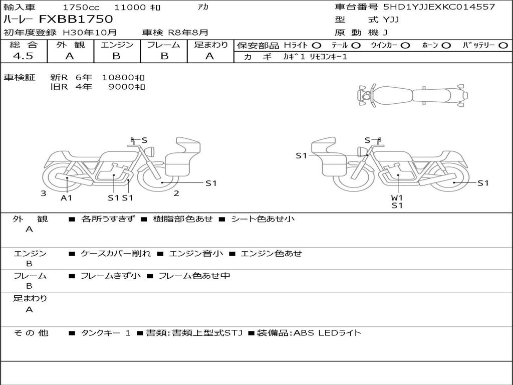 | Номер рамы / VIN | 5HD1YJJEXKC014557 |