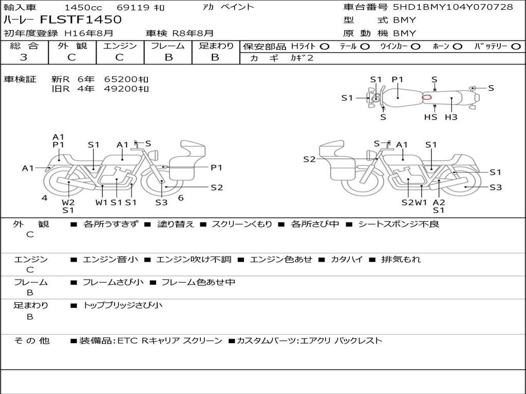 | Номер рамы / VIN | 5HD1BMY104Y070728 |