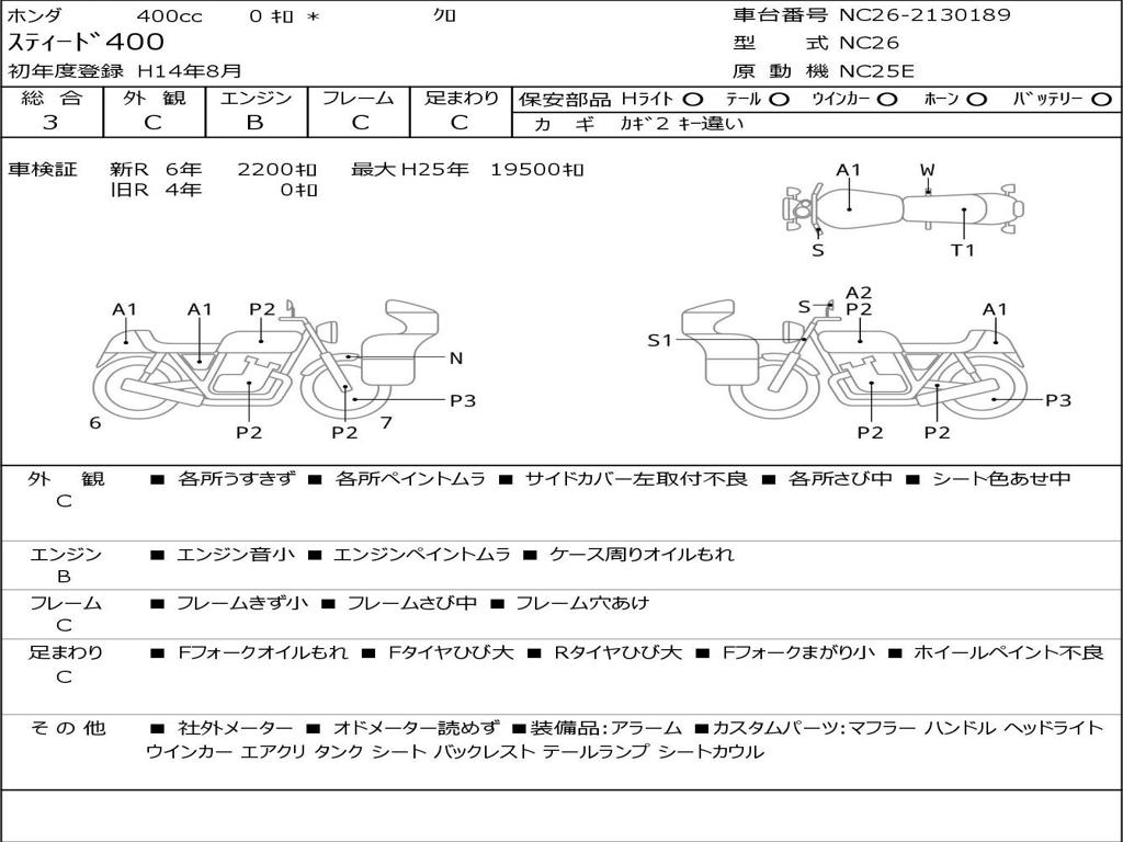 | Номер рамы / VIN | NC26-2130189 |