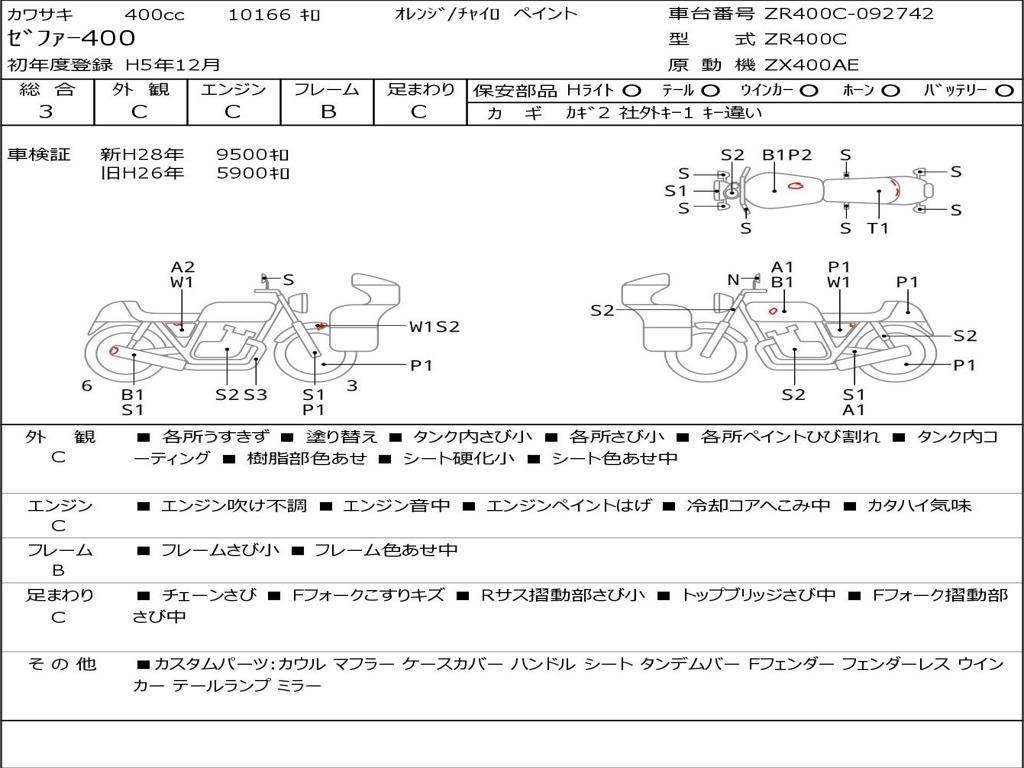 | Номер рамы / VIN | ZR400C-092742 |