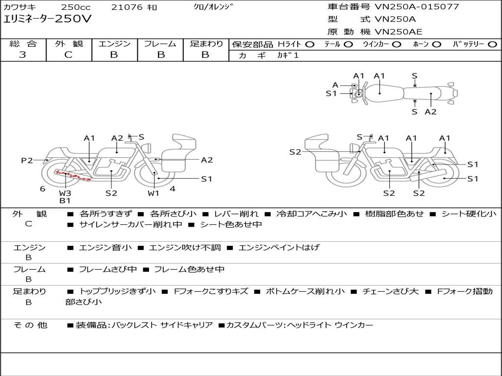 | Номер рамы / VIN | VN250A-015077 |