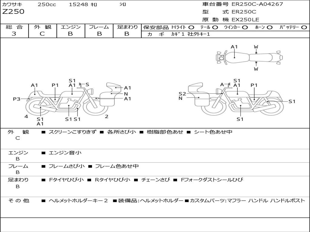 | Номер рамы / VIN | ER250C-A04267 |