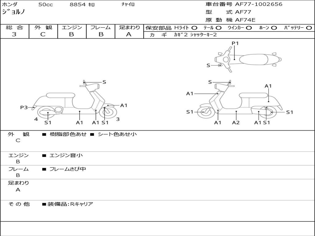 | Номер рамы / VIN | AF77-1002656 |