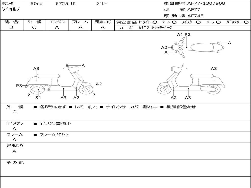 | Номер рамы / VIN | AF77-1307908 |