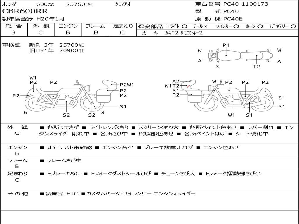 | Номер рамы / VIN | PC40-1100173 |