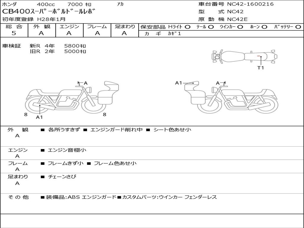 | Номер рамы / VIN | NC42-1600216 |