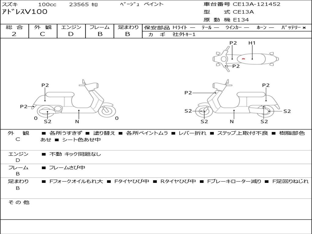 | Номер рамы / VIN | CE13A-121452 |