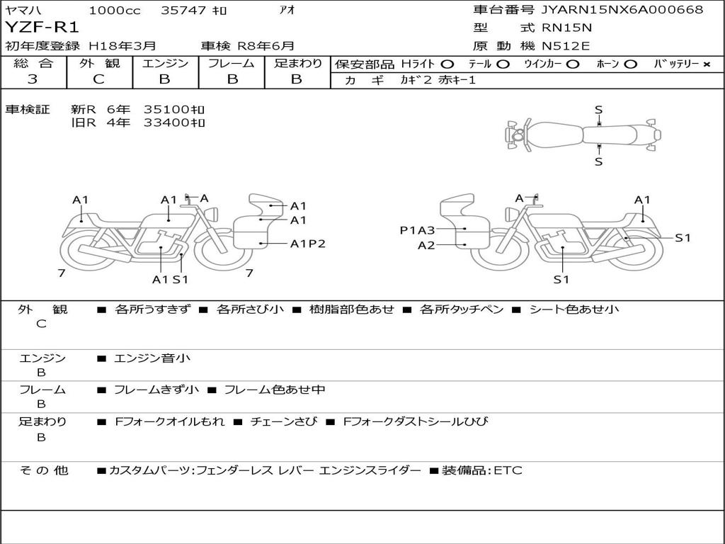 | Номер рамы / VIN | JYARN15NX6A000668 |