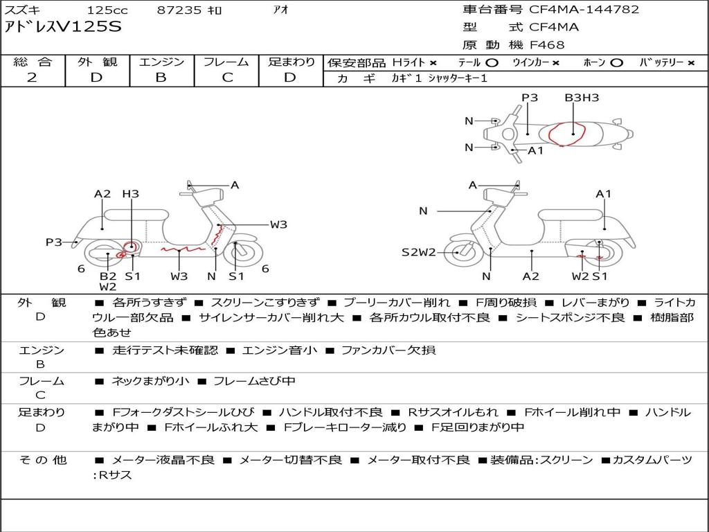 | Номер рамы / VIN | CF4MA-144782 |