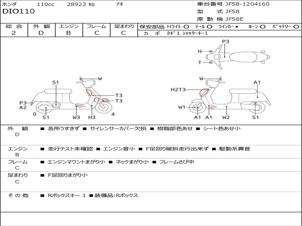 | Номер рамы / VIN | JF58-1204160 |