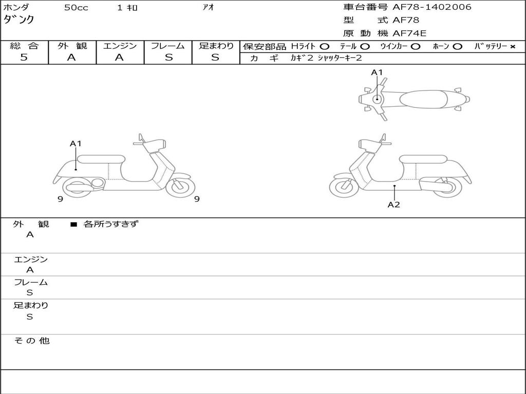 | Номер рамы / VIN | AF78-1402006 |