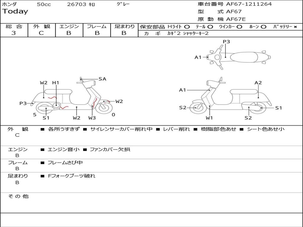 | Номер рамы / VIN | AF67-1211264 |