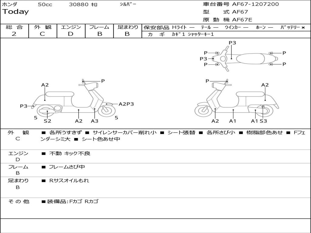 | Номер рамы / VIN | AF67-1207200 |