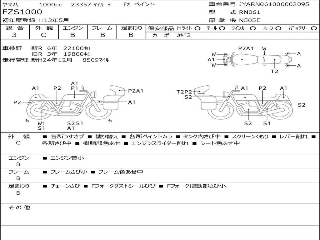 | Номер рамы / VIN | JYARN061000002095 |