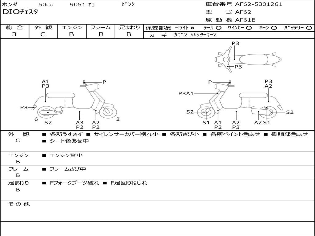 | Номер рамы / VIN | AF62-5301261 |