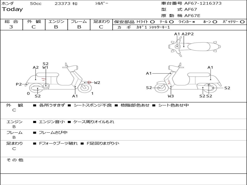 | Номер рамы / VIN | AF67-1216373 |