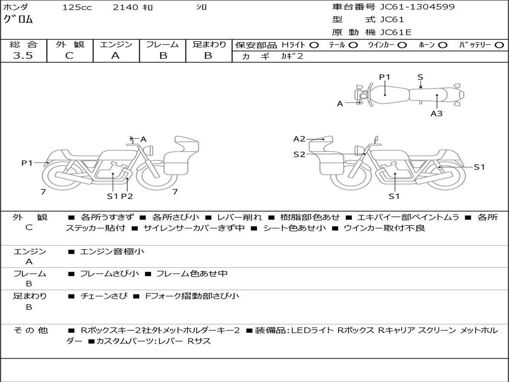| Номер рамы / VIN | JC61-1304599 |