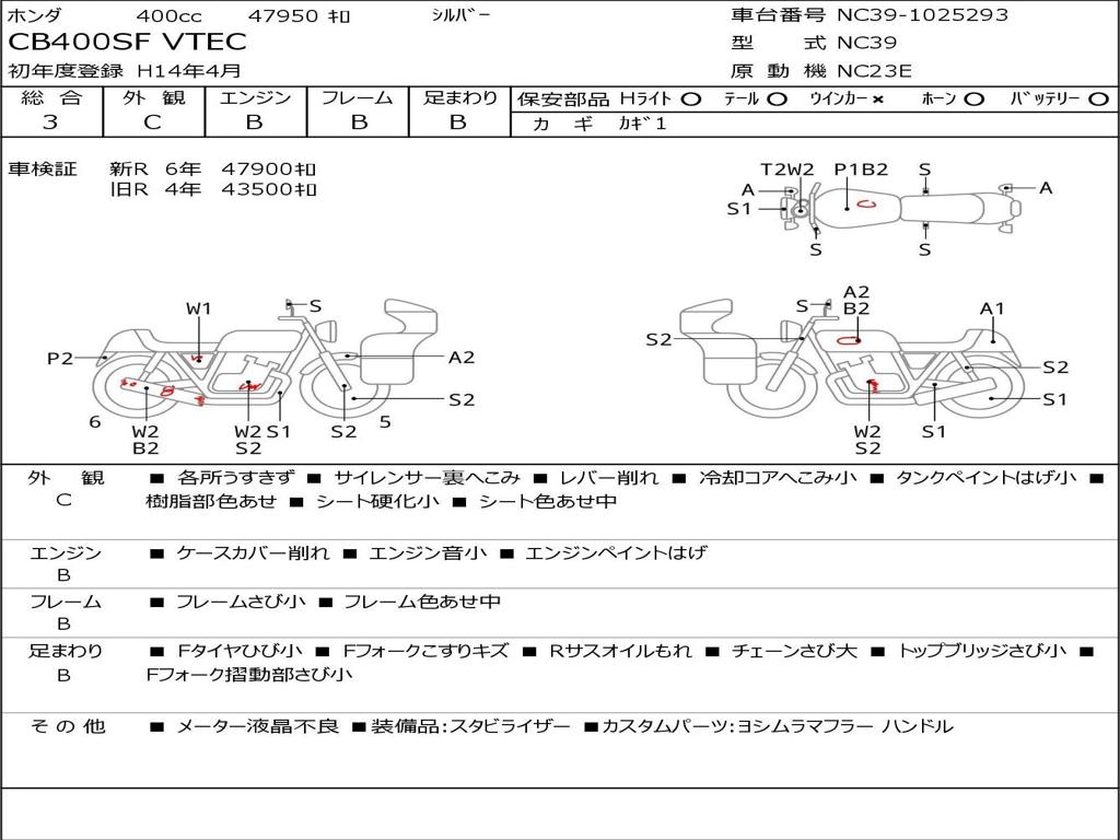 | Номер рамы / VIN | NC39-1025293 |