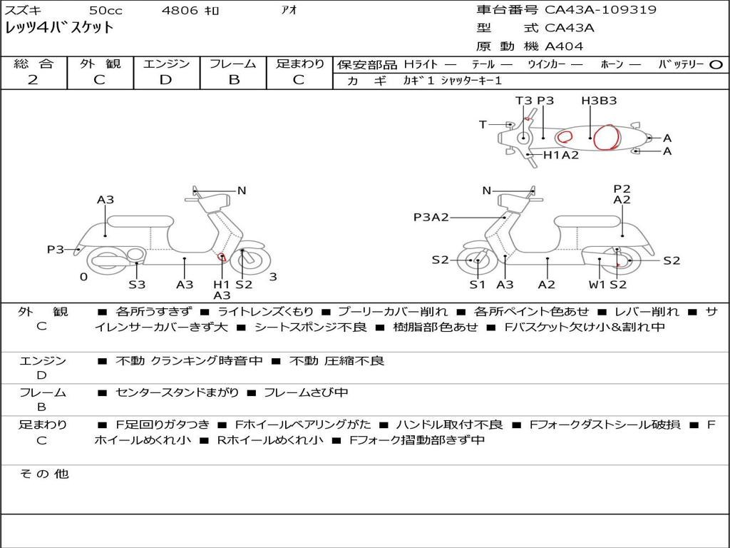 | Номер рамы / VIN | CA43A-109319 |