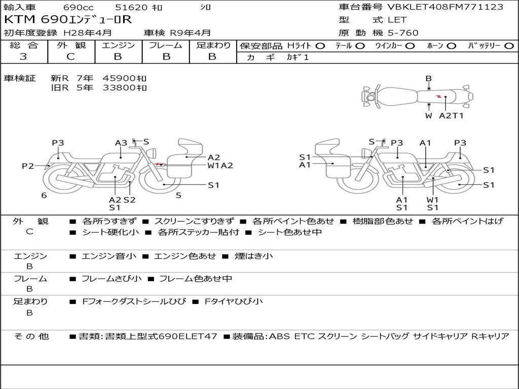 | Номер рамы / VIN | VBKLET408FM771123 |