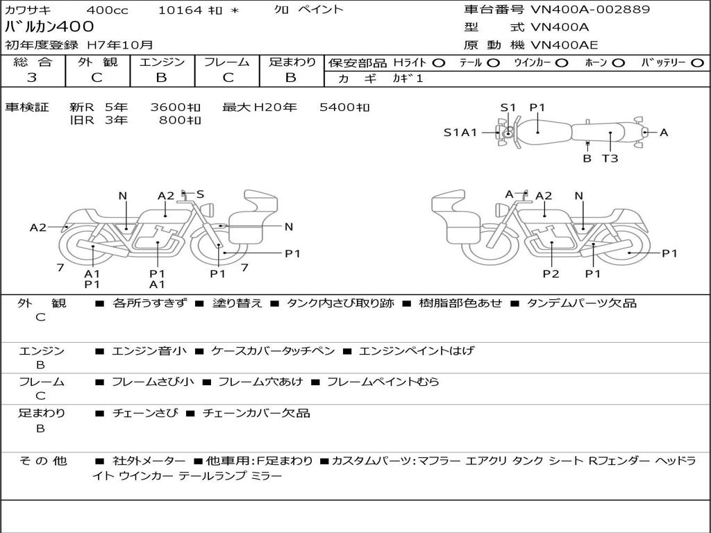 | Номер рамы / VIN | VN400A-002889 |