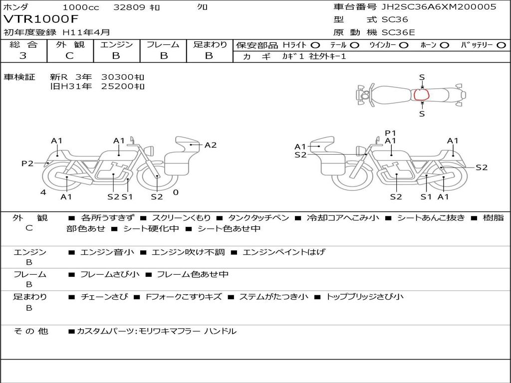| Номер рамы / VIN | JH2SC36A6XM200005 |