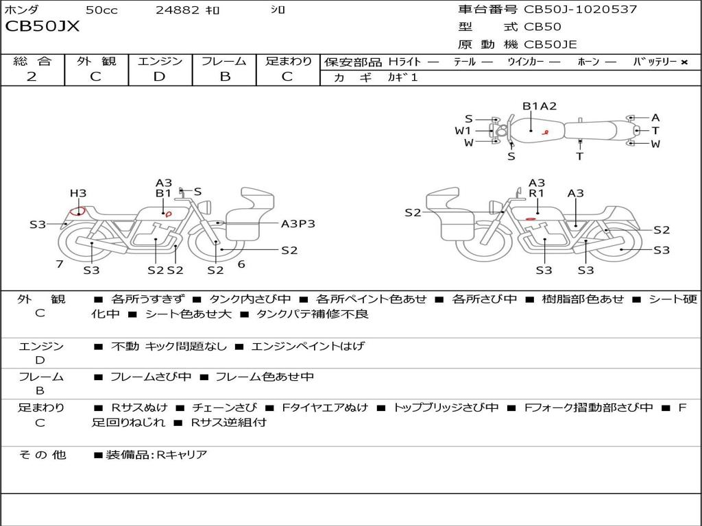 | Номер рамы / VIN | CB50J-1020537 |