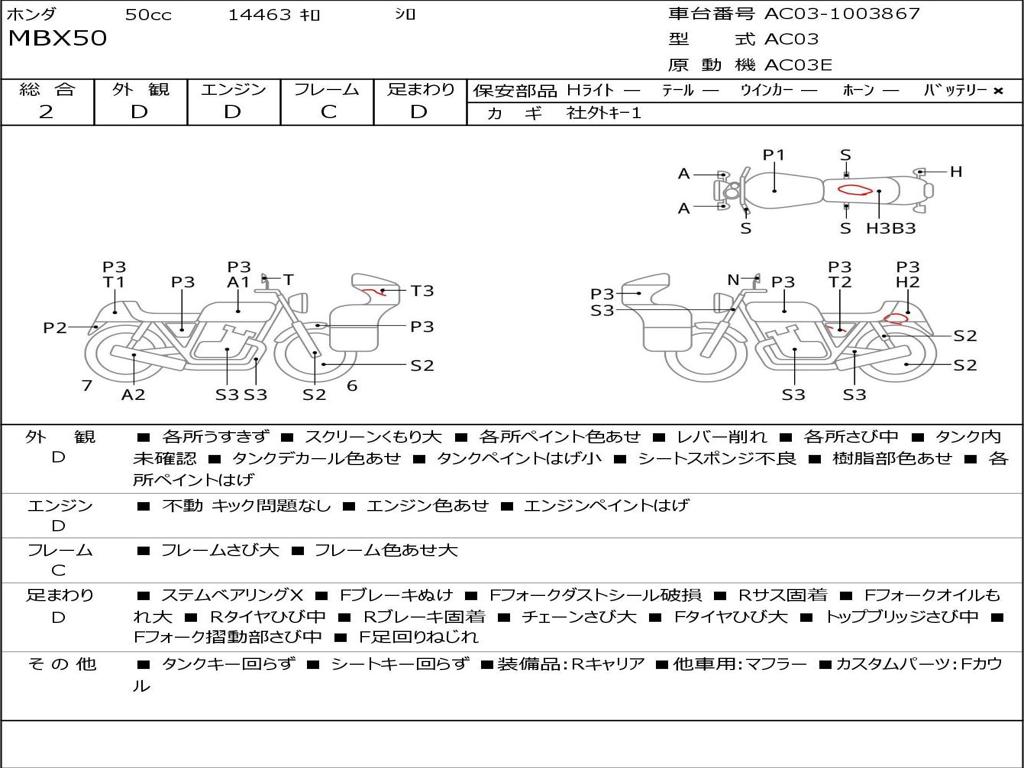 | Номер рамы / VIN | AC03-1003867 |