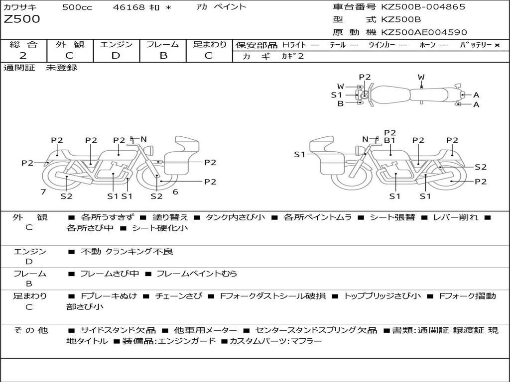 | Номер рамы / VIN | KZ500B-004865 |