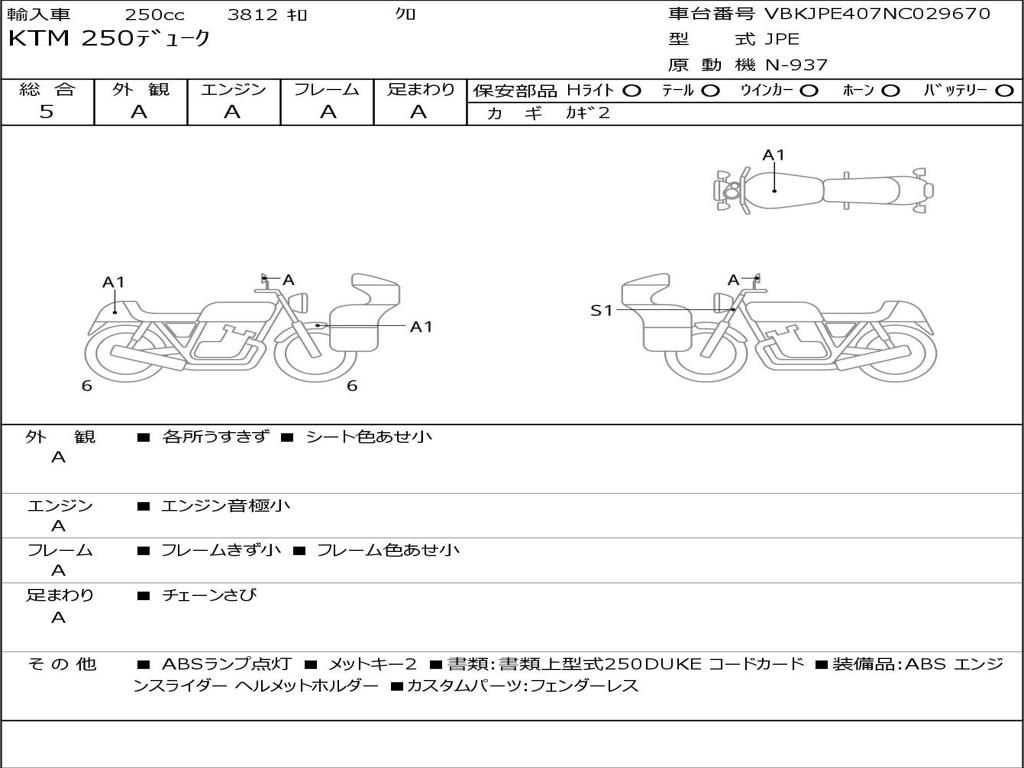 | Номер рамы / VIN | VBKJPE407NC029670 |