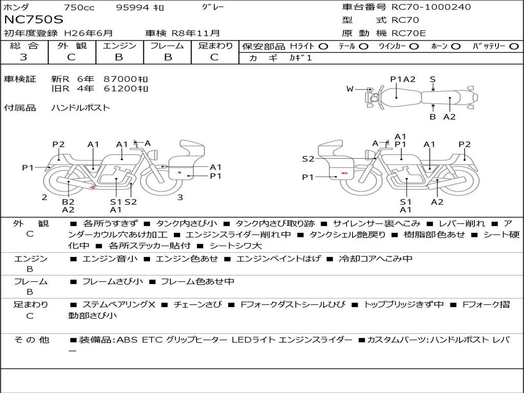 | Номер рамы / VIN | RC70-1000240 |