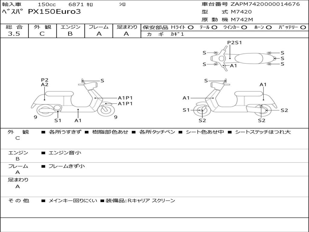 | Номер рамы / VIN | ZAPM7420000014676 |