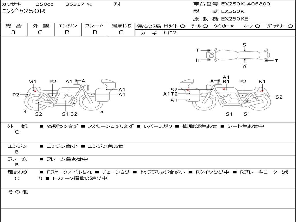 | Номер рамы / VIN | EX250K-A06800 |