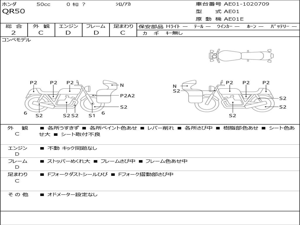 | Номер рамы / VIN | AE01-1020709 |
