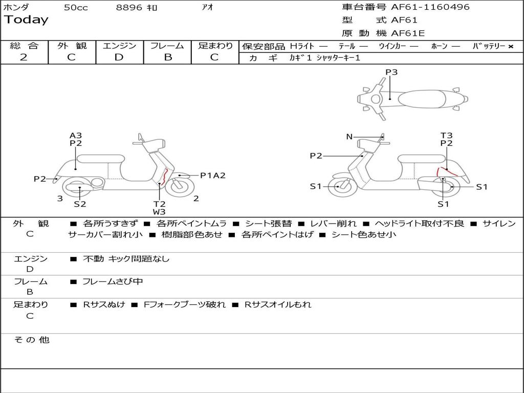 | Номер рамы / VIN | AF61-1160496 |
