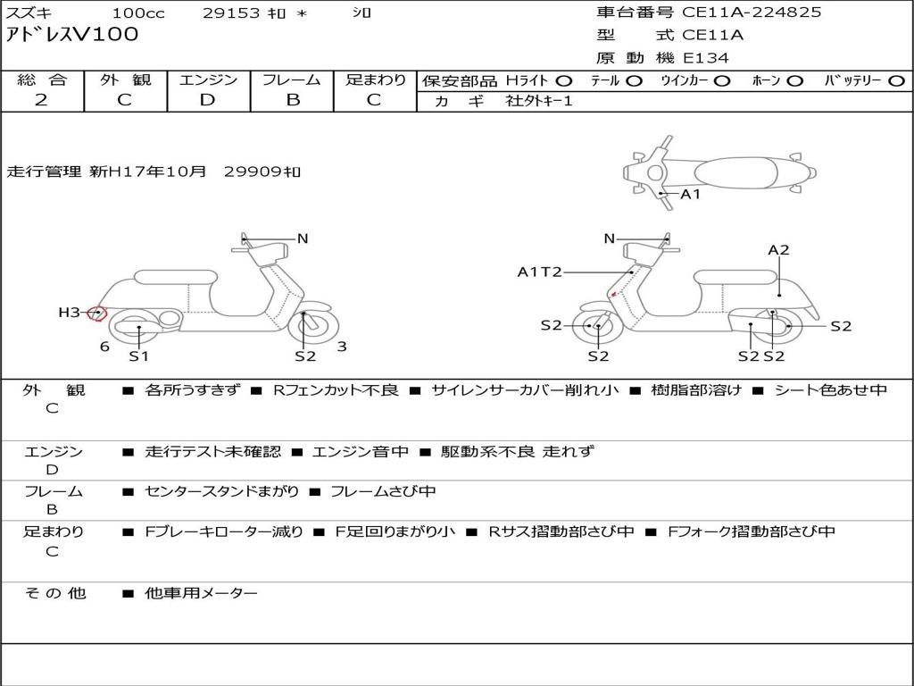 | Номер рамы / VIN | CE11A-224825 |