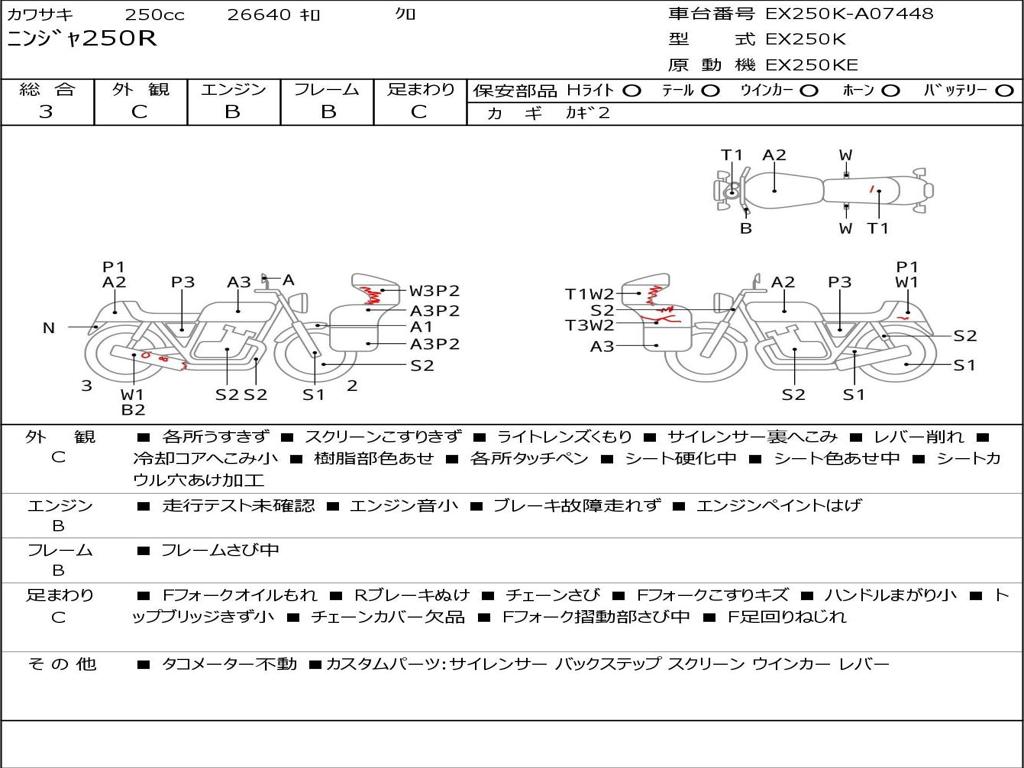 | Номер рамы / VIN | EX250K-A07448 |