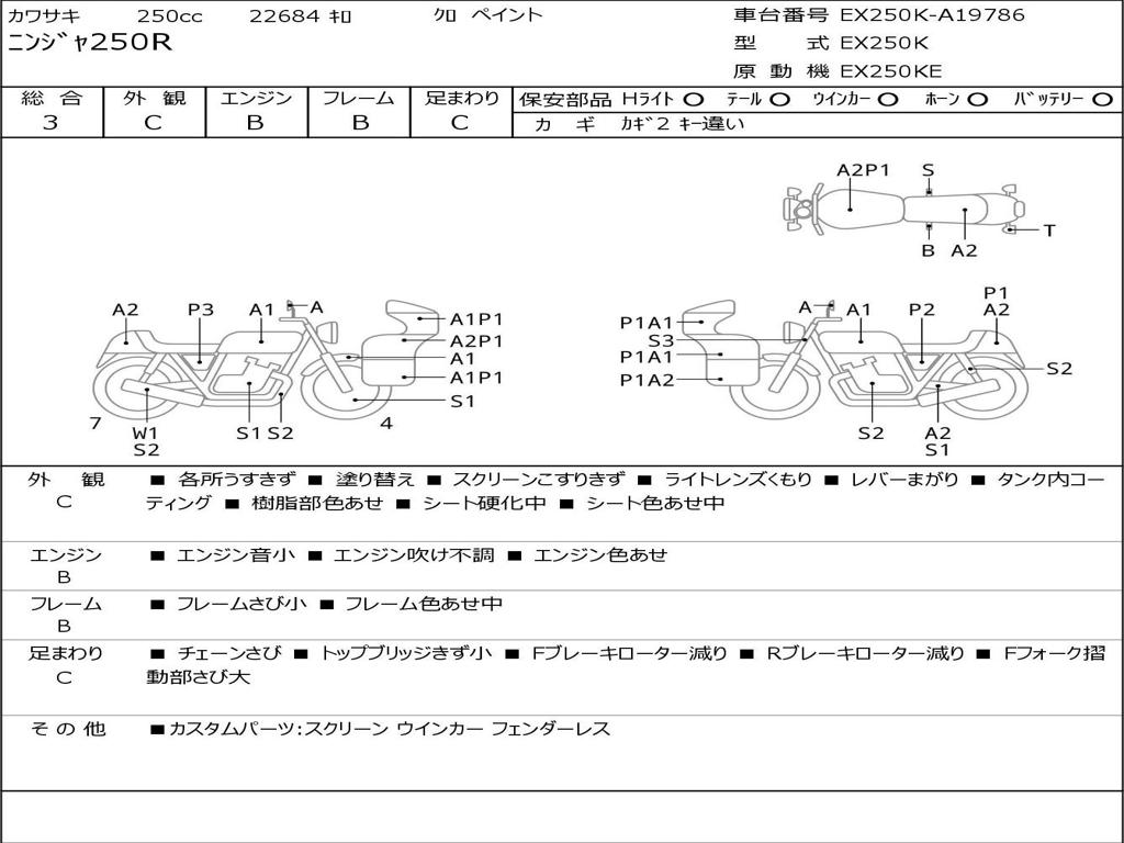 | Номер рамы / VIN | EX250K-A19786 |