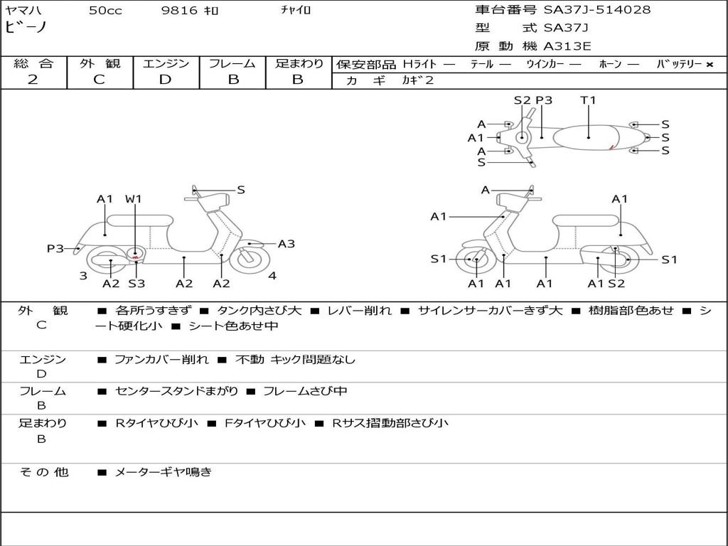 | Номер рамы / VIN | SA37J-514028 |