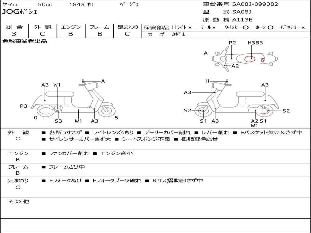 | Номер рамы / VIN | SA08J-099082 |