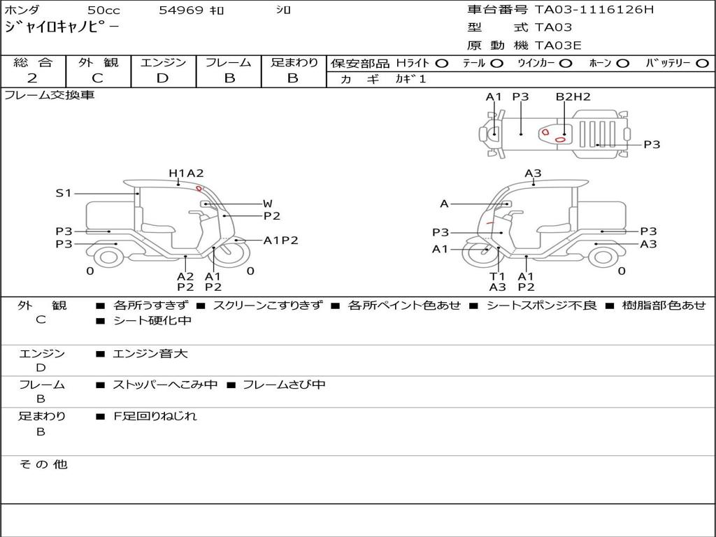 | Номер рамы / VIN | TA03-1116126H |
