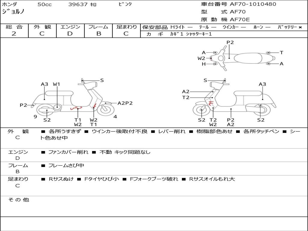 | Номер рамы / VIN | AF70-1010480 |