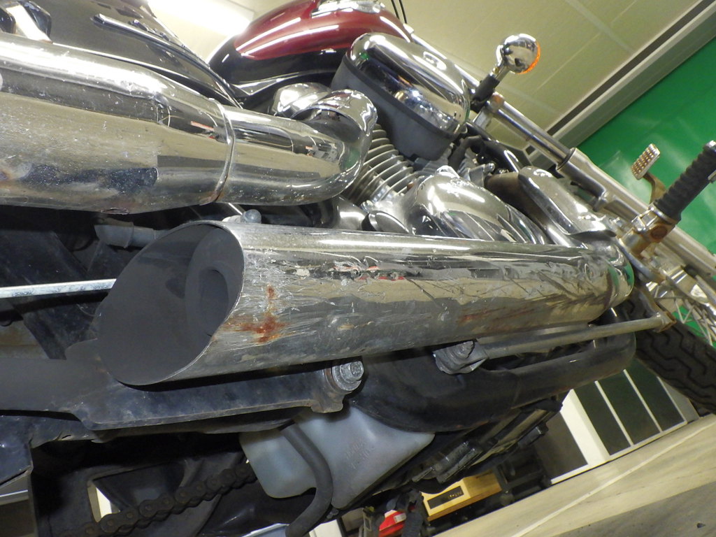 | глушитель | царапины <много>, вмятина <много>, следы коррозии, неоригинал |