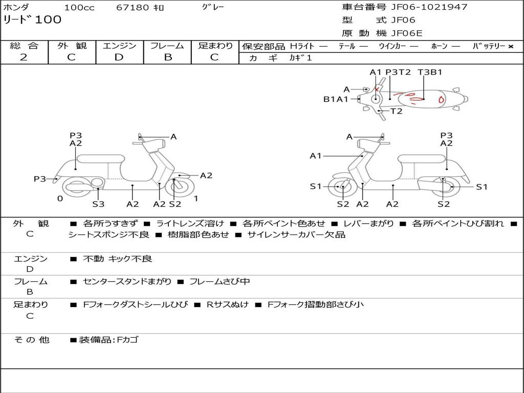 | Номер рамы / VIN | JF06-1021947 |