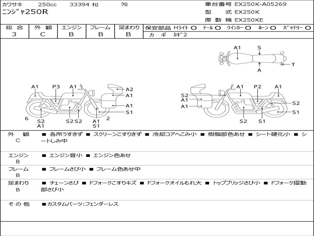 | Номер рамы / VIN | EX250K-A05269 |
