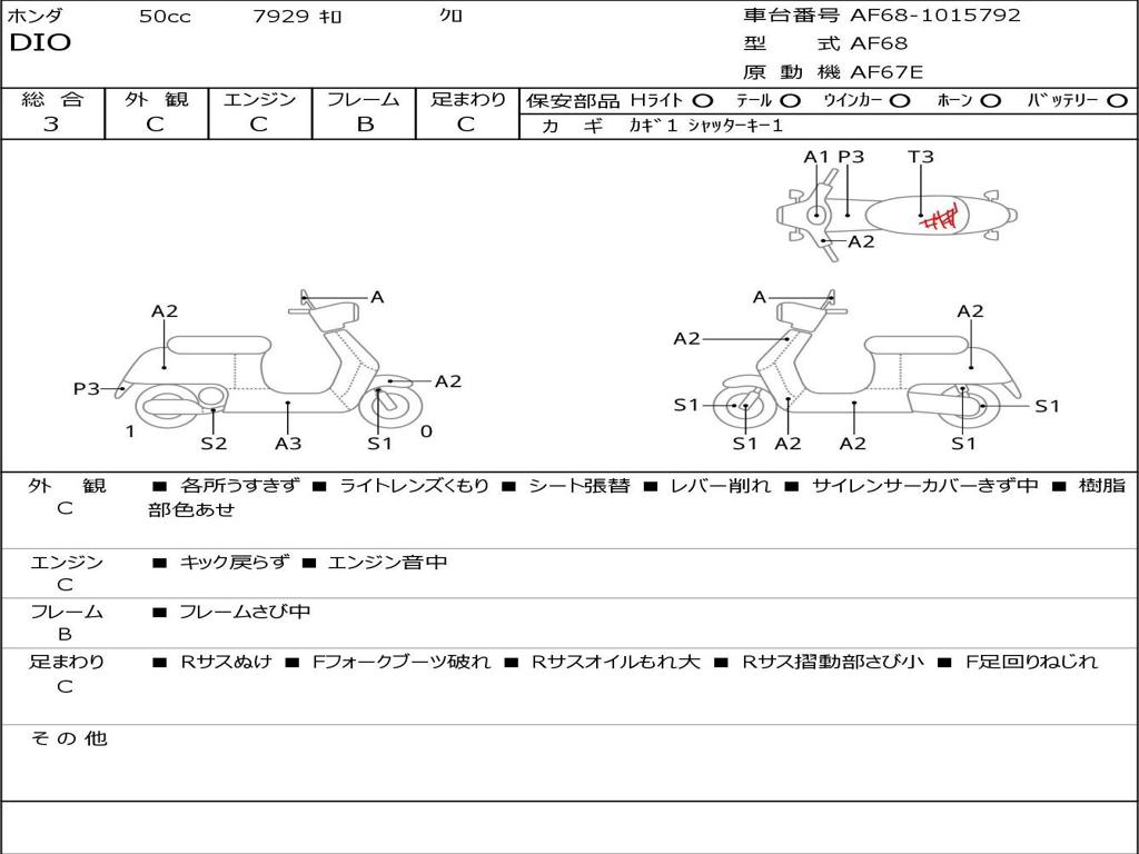 | Номер рамы / VIN | AF68-1015792 |
