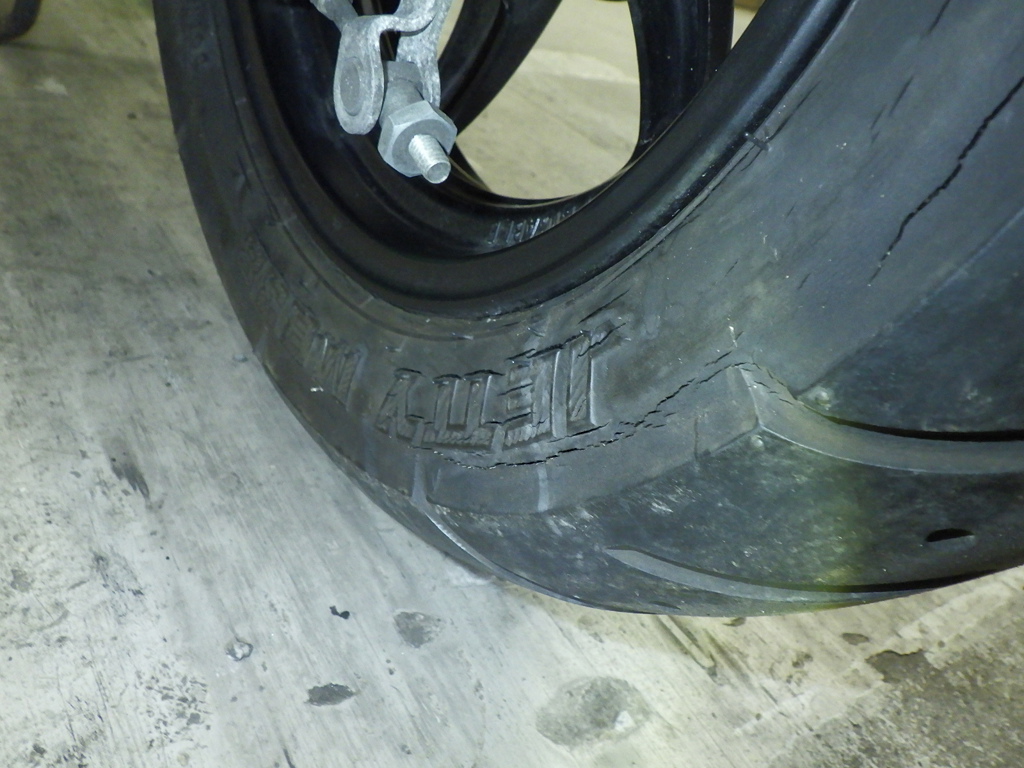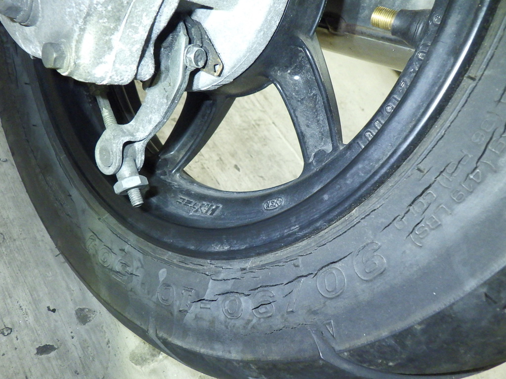 | шина | трещины, требует замены |