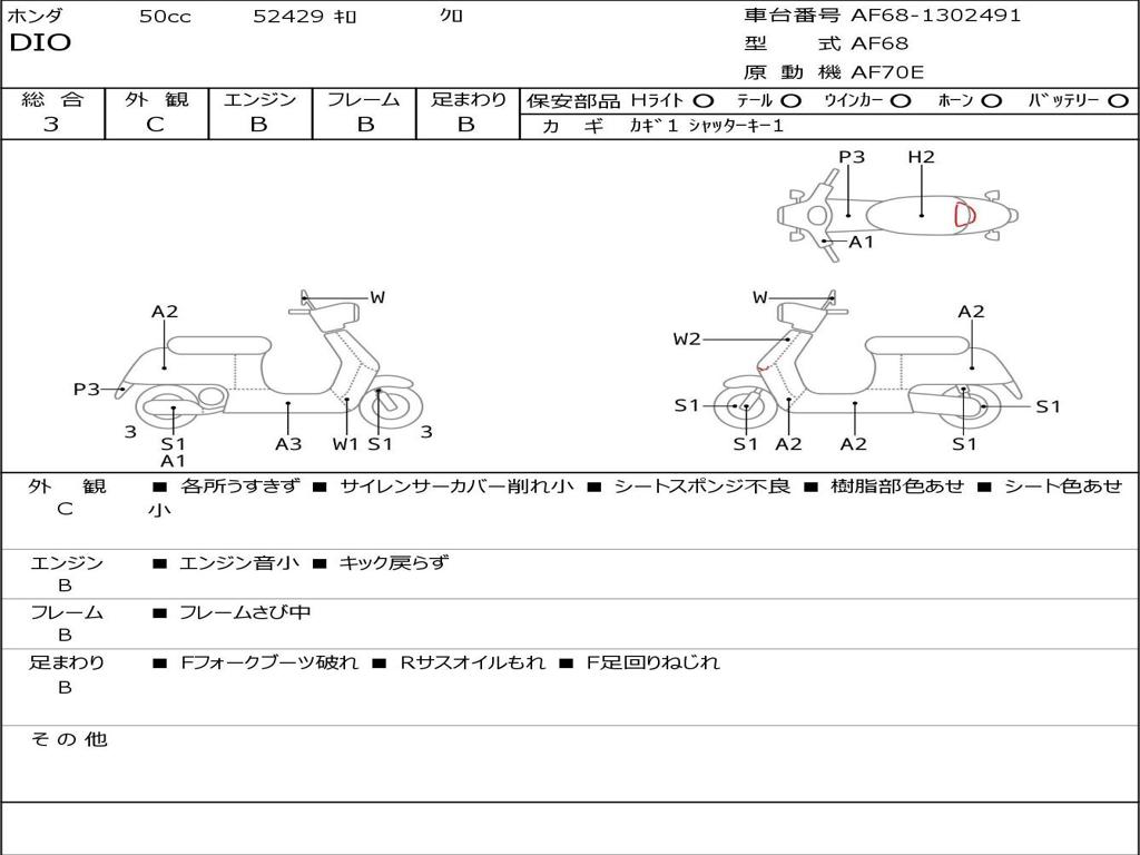 | Номер рамы / VIN | AF68-1302491 |